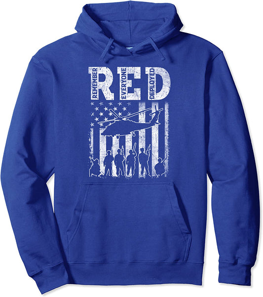 RED Friday Remember Everyone Deployed Vintage US Flag Army Pullover Hoodie