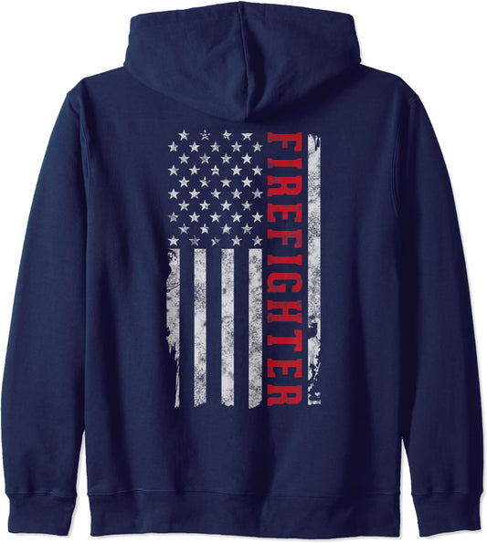 Thin red line USA flag Firefighter gift for 4th of July Zip Hoodie