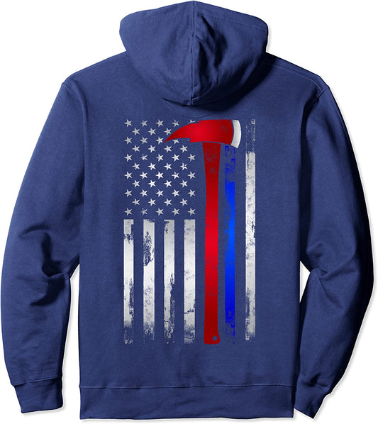 Thin Red Blue line American Flag Axe gift Firefighter Police Pullover Hoodie