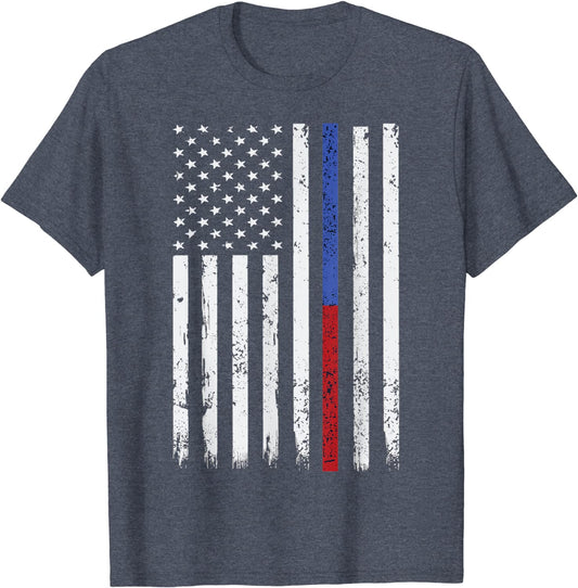 Firefighter & Police Officer Thin Red & Blue Line USA Flag T-Shirt