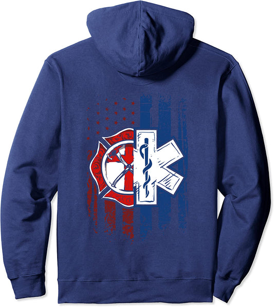 Patriotic Paramedic Firefighter EMT USA Flag EMS Pullover Hoodie
