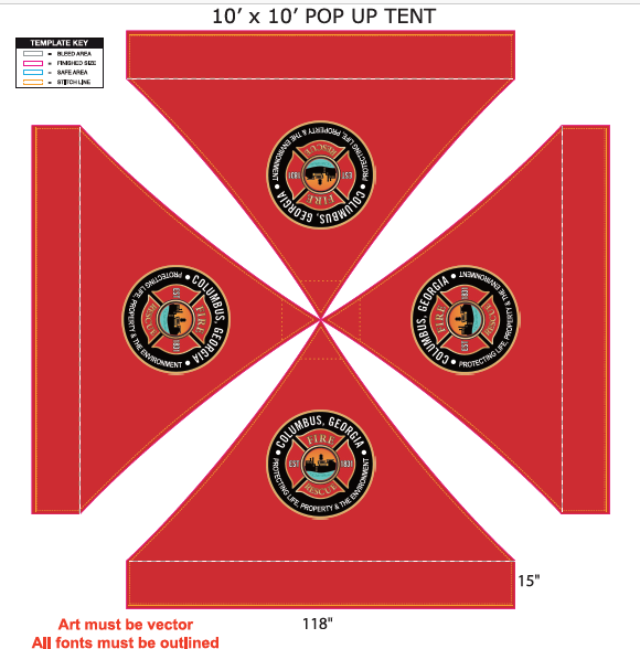 2 qty Columbus Fire & EMS 10' x 10' Commercial Grade Steel Frame, Dye Sub Canopy